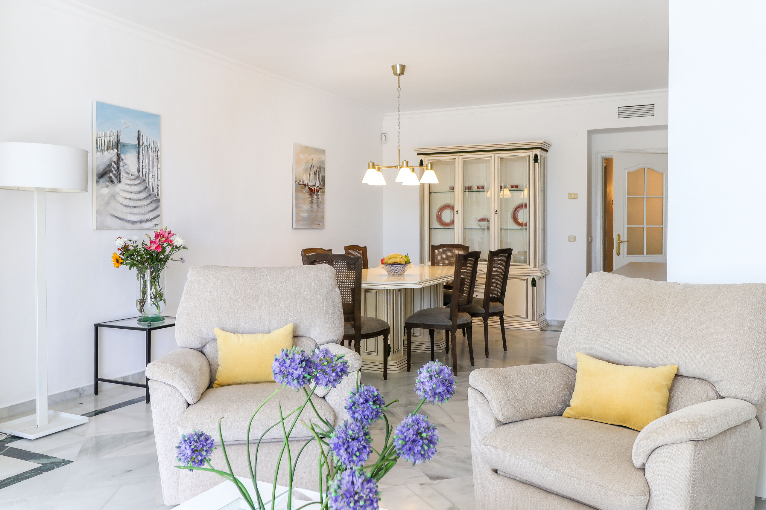 Luminoso y cómodo apartamento ubicado en una exclusiva urbanización segura con jardines impecables en el corazón de la animada ciudad de Elviria. Dentro de 10-15 minutos a pie, tiene todas las comodidades, tiendas, una gran variedad de restaurantes y playas doradas aparentemente interminables. El complejo Elviria del Sol ofrece mucho espacio y privacidad, jardines impecablemente cuidados, dos grandes áreas de piscina (una climatizada en invierno) con muchas hamacas, excelente restaurante, zona Wi-Fi gratuita y canchas de tenis. Preciosa casa de vacaciones con mucha luz, cómodas camas y gran terraza con vistas al jardín. La elección perfecta para familias con niños, parejas en vacaciones románticas o personas mayores que quieran disfrutar del sol en un ambiente tranquilo. Marbella ciudad - 15 minutos en coche.