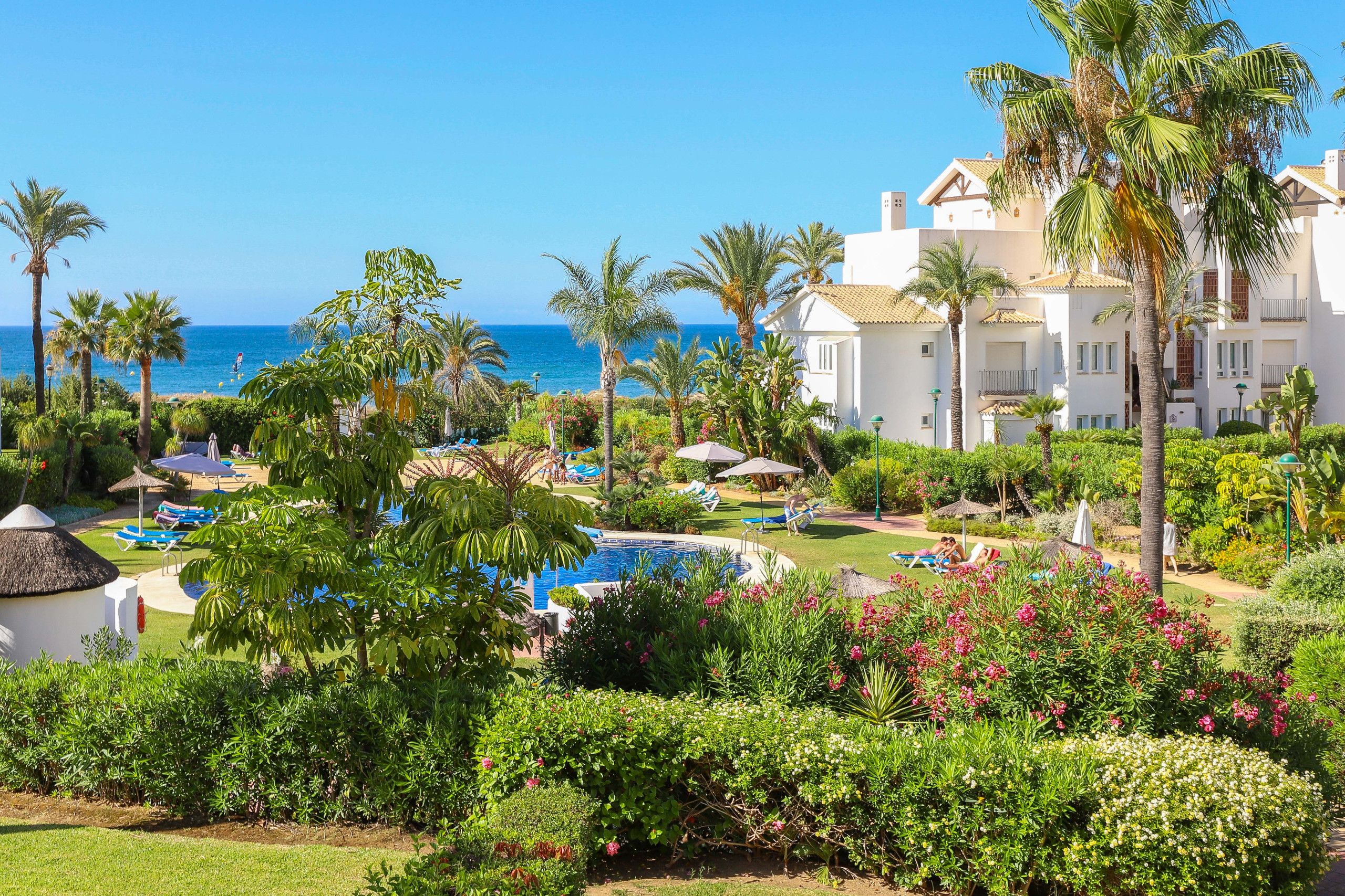 Apartamento luminoso y cómodo en planta baja con jardín privado y gran terraza, ubicado en la comunidad segura y tranquila de Los Monteros Palm Beach, ideal para familias, parejas y amantes de la playa.