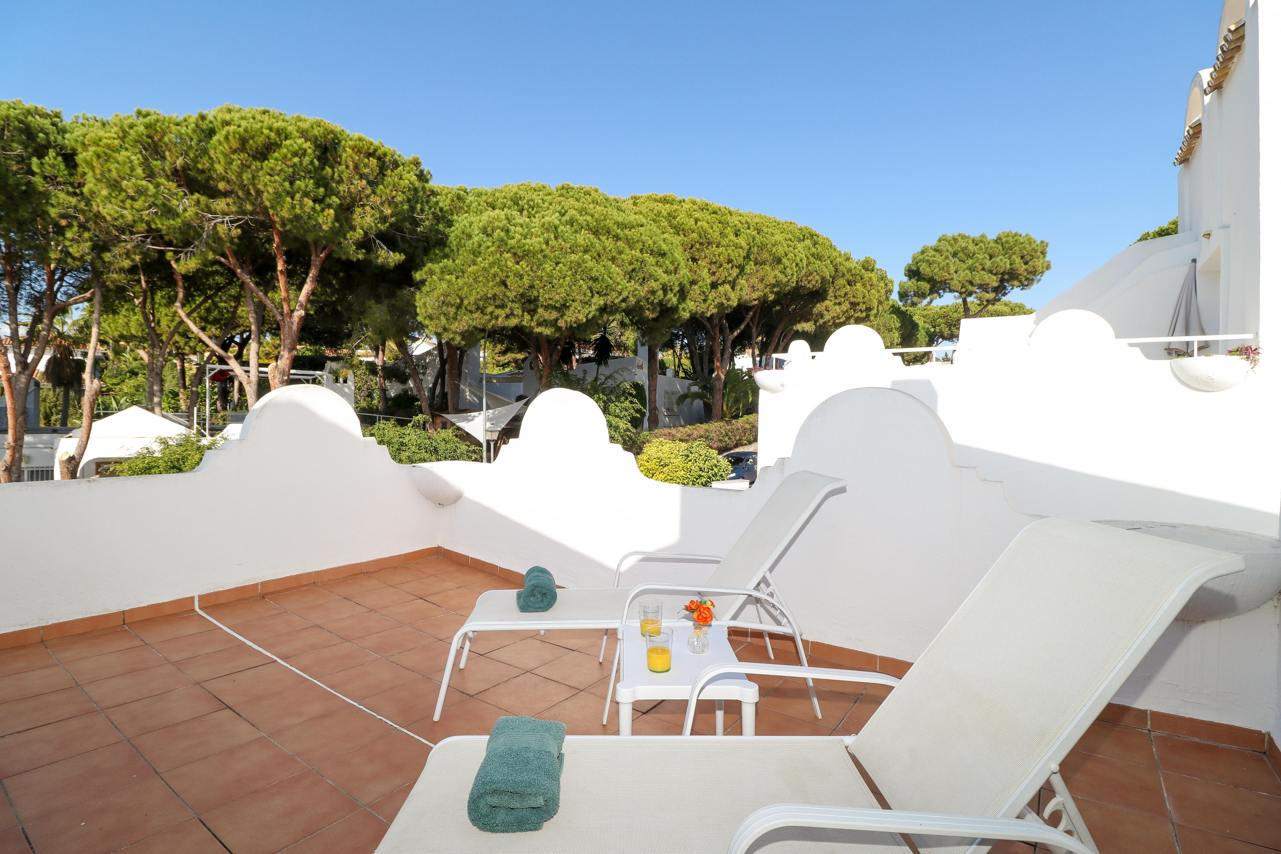 La maison est ensoleillée et confortable et se compose de deux chambres, deux salles de bain et trois terrasses qui vous permettent de profiter du soleil toute la journée.
