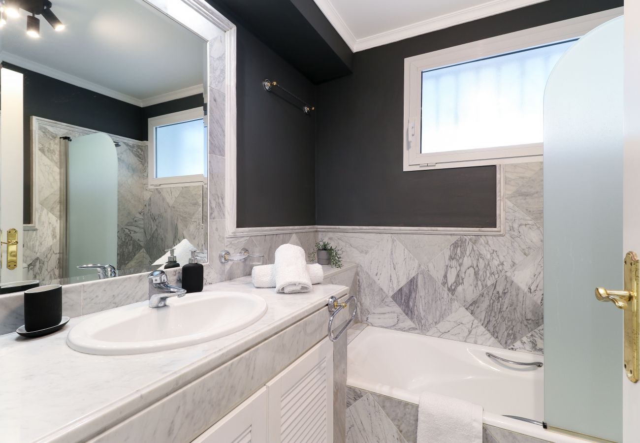 This ground floor apartment with plenty of light was recently refurbished and consists of three beautiful cozy bedrooms, two bathrooms, spacious living room with open plan kitchen, and access to the sunny partly covered terrace with dining table and couple of sun loungers. All three rooms offers comfortable king size beds (1.80x2.00). Air-conditioning throughout, fast Wi-Fi, washer and dryer, heated floors in the bathrooms for extra comfort. Free parking on the street just outside of the complex.