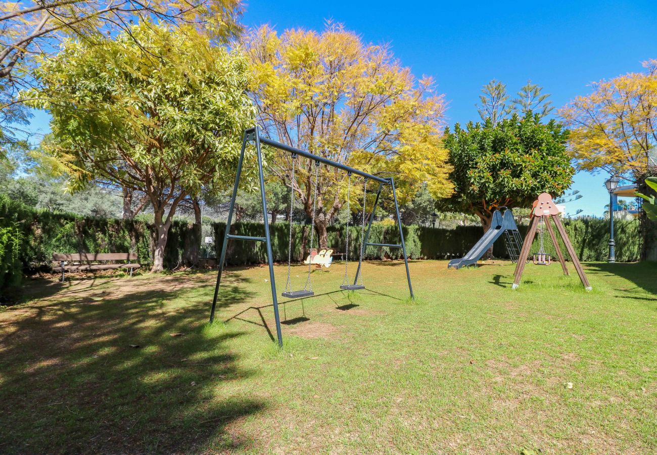 Gated complex Bahia Real offers two large swimming pool areas with sun loungers, well-kept gardens, paddle courts and kids playground. Few minutes walk (700 m) to the sandy beach with promenade that stretches for few kms towards Marbella with beach restaurants along the way. Nearest beach restaurant El Mangaleta that offers for rent sun loungers. Supermarket ALDI is only 500 meters away.