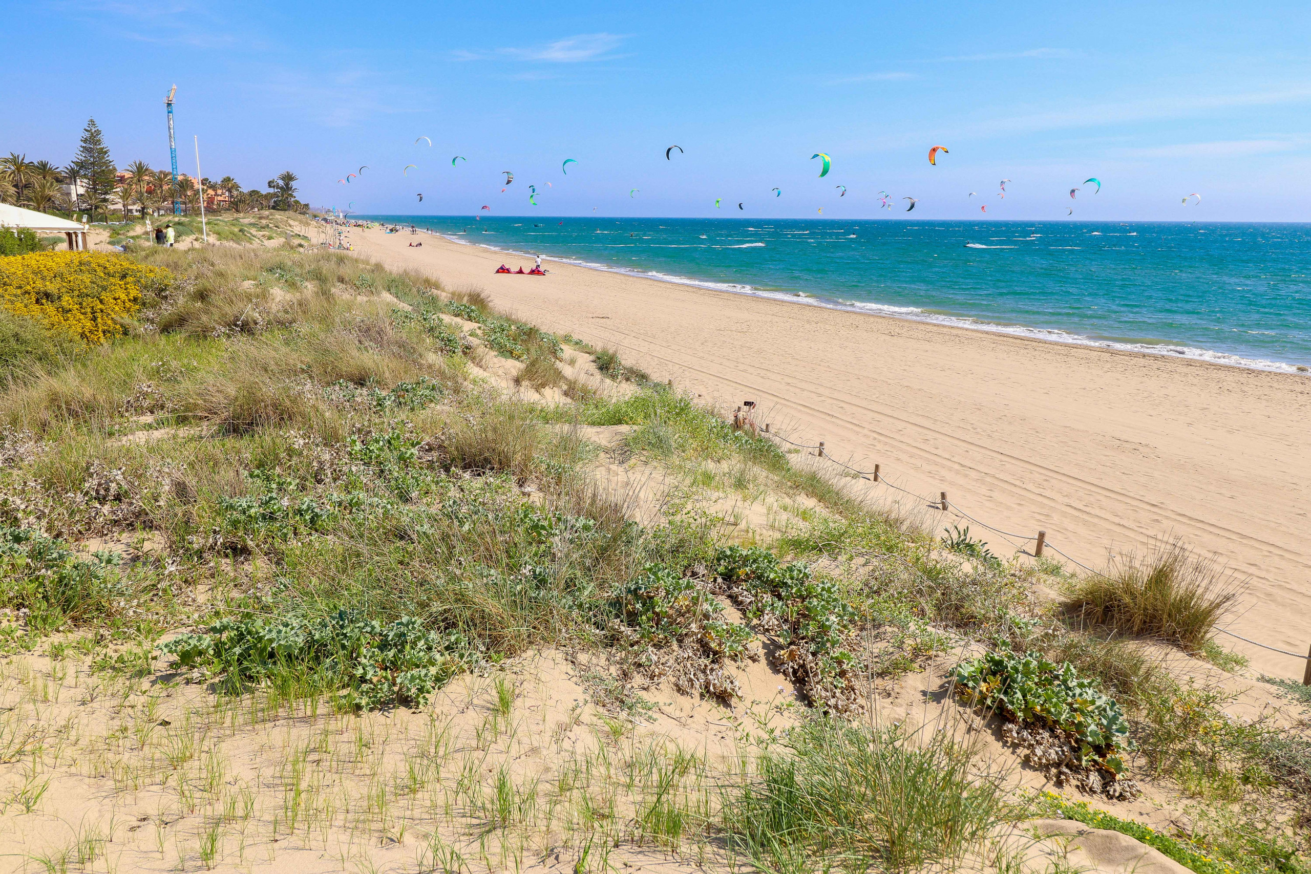This holiday home consists of 3 bedrooms and 2 bathrooms. Master bedroom with super king size bed (1.80x2.00) and ensuite bathroom; 2nd bedroom with double bed (1.35x1.90) and single bed; and kids bedroom with two single beds. Adjacent shower room to share. Modern open plan kitchen is full equipped to prepare your meals. Large living room with comfortable sitting area, Smart TV and dining table for 6 persons. Living room and main bedroom have access to the outdoor terrace (west facing) with views to the green gardens. Terrace equipped with electric awnings to create some shade during the hot sunny days and there is also access to the small private garden. Large swimming pool located just outside of the apartment's block. Another swimming pool with direct access to the beach and beach restaurant just 3 minutes walk.