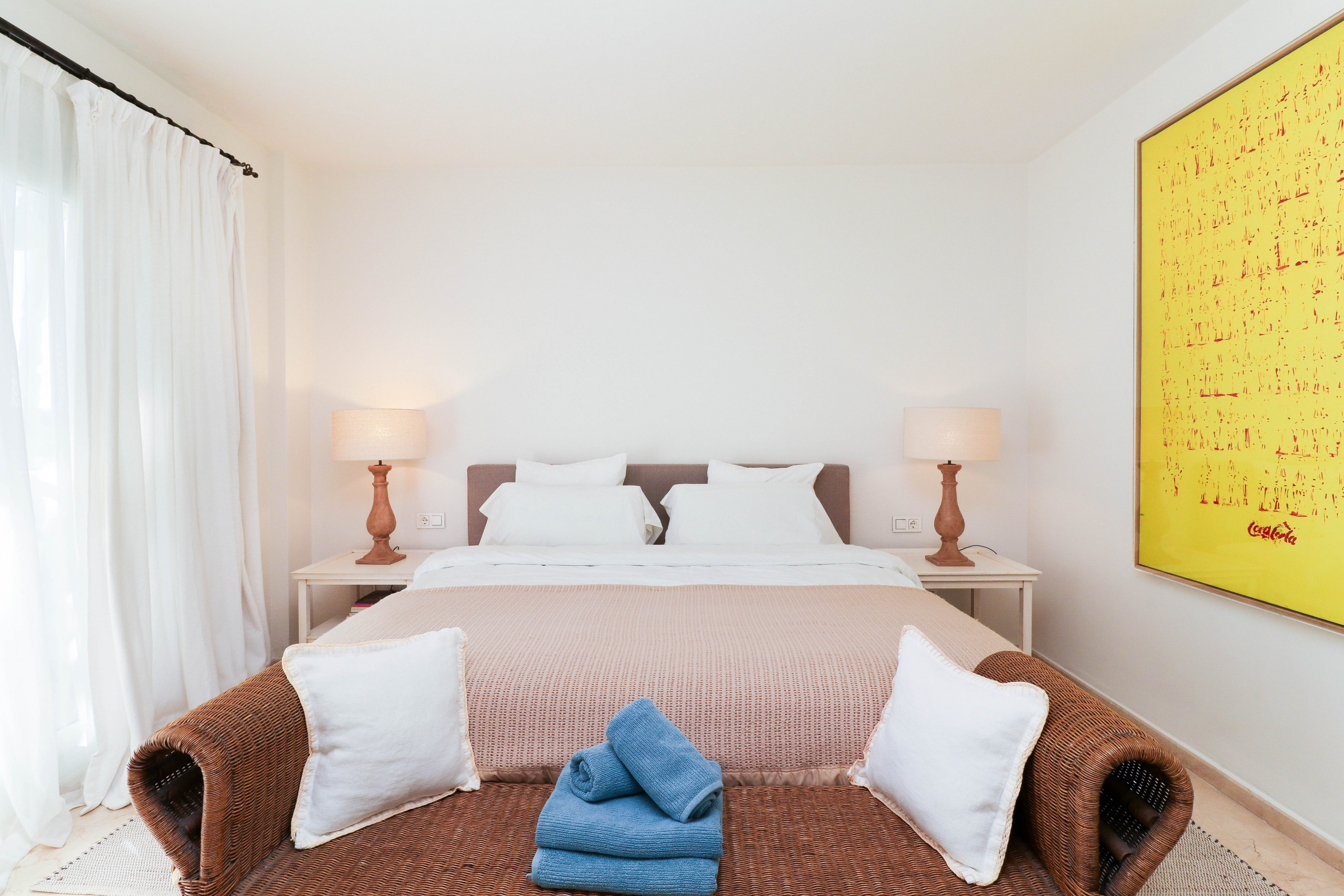 апартаменты в Марбелья / Marbella 3 количество спален вместимостью на 6 чел. Проживание из 180 кв.м удобный и большой, расположенное на первой линии моря, с видом на море и сад. Находится в 2 м от песчаного пляжа "Los Monteros Beach", в 10 м До ресторана "Palm Beach (summer season only)", в 300 м от парка аттракционов "Kite Surf, Marbella", в 300 м До ресторана "Trocadero Arena", в 2 km от супермаркета "ALDI", в 2 km ? ?? ???????? "Hospital Costa del Sol", в 4 km от поля для гольфа "Rio Real Golf", в 6 km от города "Marbella", в 7 km от супермаркета "La Cañada shopping centre", в 7 km до автобусной станции "Marbella bus station", в 50 km от аэропорта "Malaga airport (AGP)" и расположено в спокойной зоне и рядом с морем.Размещение имеет лифт, зеленая зона, сад, oгороженный участок, 40 кв.м террасы, стиральная машина, сушилкой для белья, Барбекю, Камин, утюг, Доступ в интернет (wi-fi), Фен, Балкон, центральное отопление, кондиционер, бассейн жилого комплекса, гараж в этом же здании, москитные сетки в спальной комнате, 1 телевизор, спутниковая антенна (языки: испанский, англиийский, немецкий, французский, русский). Отдельная кухня, оснащена электрической плитой, оборудовано холодильник, микроволновая печь, духовка, морозильная камера, посудомоечная машина, столовые приборы, кухонная утварь, кофеварка, тостер, Чайник и Соковыжималка.1 комментировать