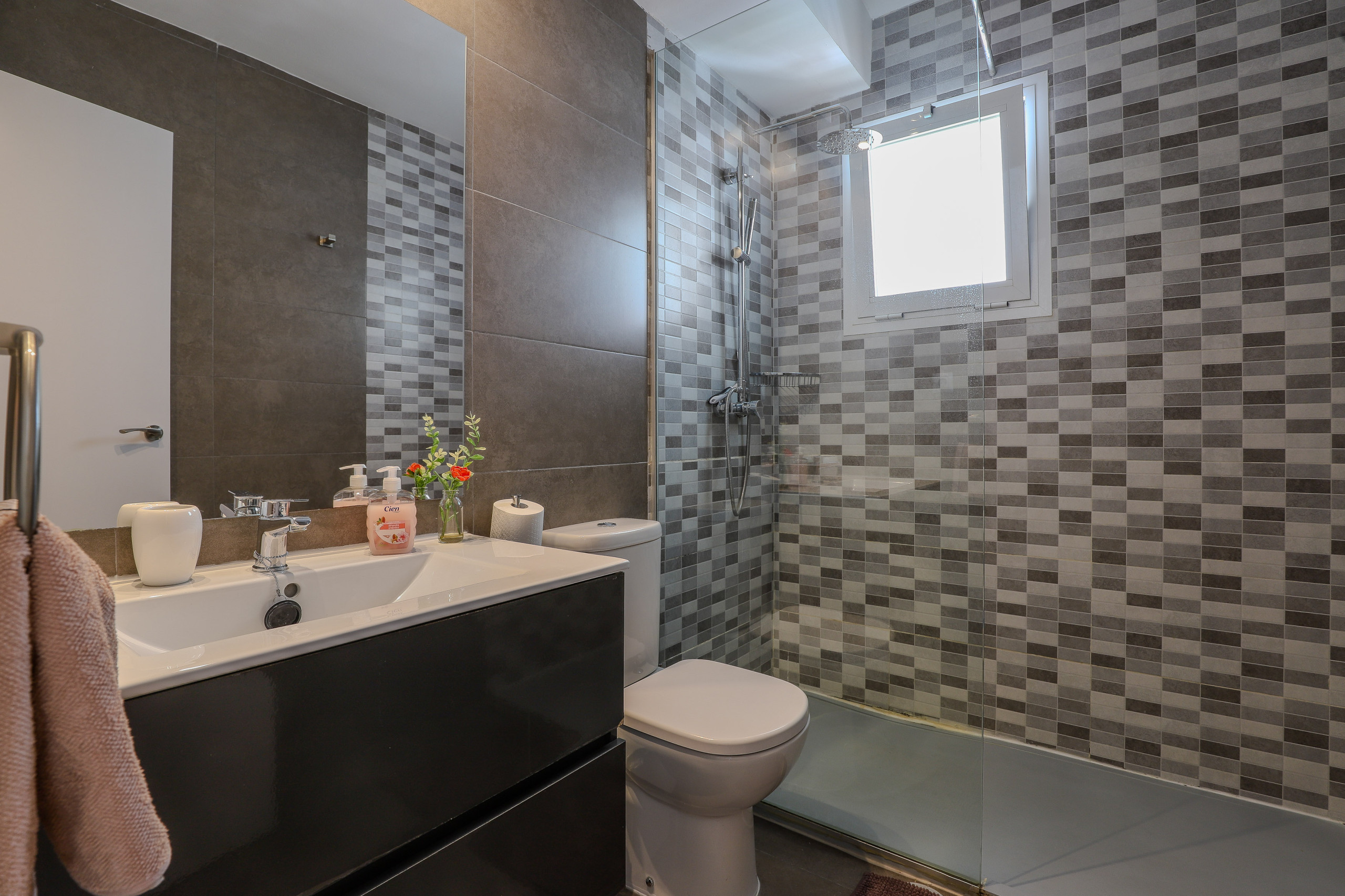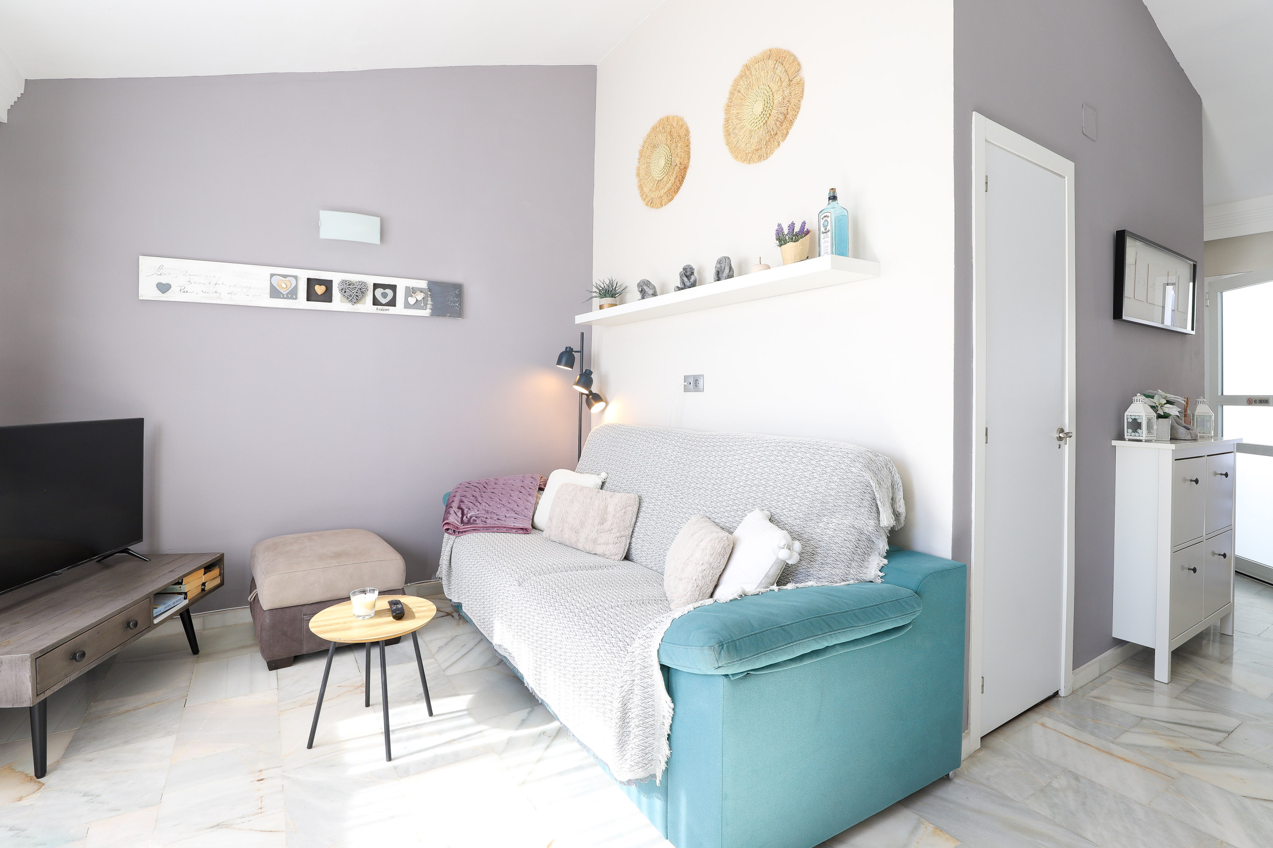 Жилая площадь разработана с учетом комфорта, с уютной посадочной зоной, плоским смарт-телевизором и быстрым Wi-Fi. Квартира также оснащена кондиционерами во всех комнатах, что обеспечивает комфортную температуру по всей площади.