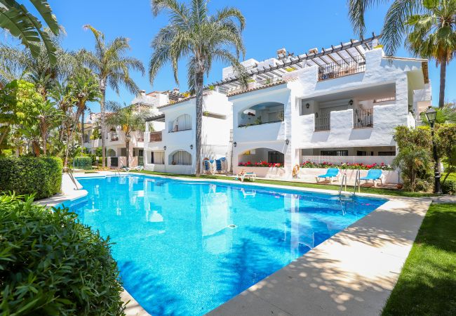 Элегантная, великолепно отделанная квартира на первом этаже в небольшом закрытом комплексе в Сан-Педро-де-Алькантара — всего в 300 метрах от золотых пляжей и живописной набережной, ведущей к Пуэрто-Банус. Недвижимость имеет две спальни и outstanding западную крытую террасу с видом на спокойные сады и тихий бассейн. Терраса выделяется удобной уличной мебелью и элегантным обеденным столом, создавая идеальную обстановку для расслабленных послеобеденных часов и трапез на свежем воздухе. Все удобства, отличные рестораны, спортивный клуб и очаровательный центр деревни находятся в легкой доступности. Марбелья, Бенаавис и Эстепона находятся в непродолжительном переезде, а аэропорт Малаги — примерно в 40 минутах езды.