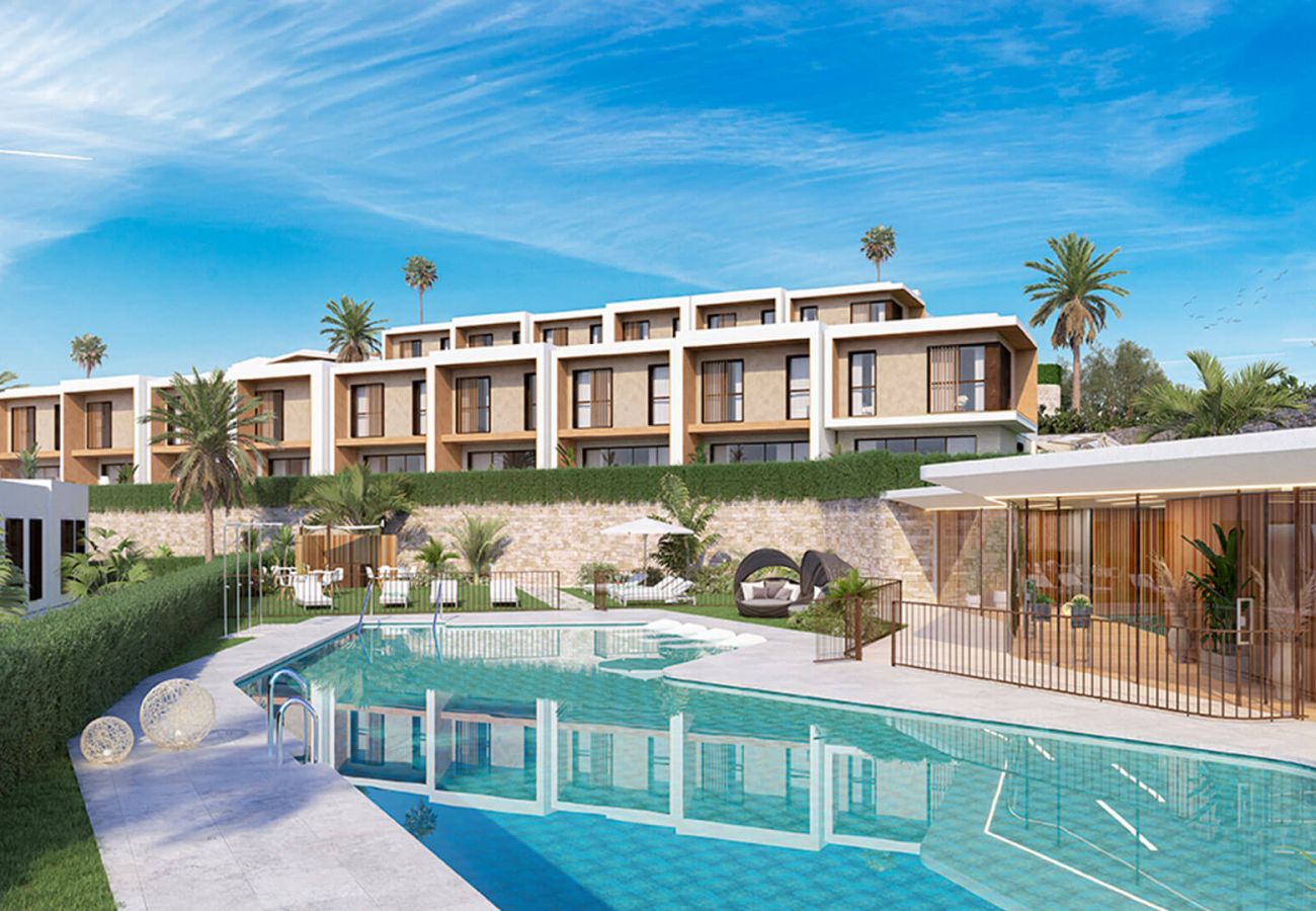 Cala Serena Sun is a new complex consisting of 68 terraced houses with 3- and 4-bedroom layouts. All the homes benefit from a south-facing orientation, with a garage, terrace, and garden. Many of the properties also boast excellent sea views.